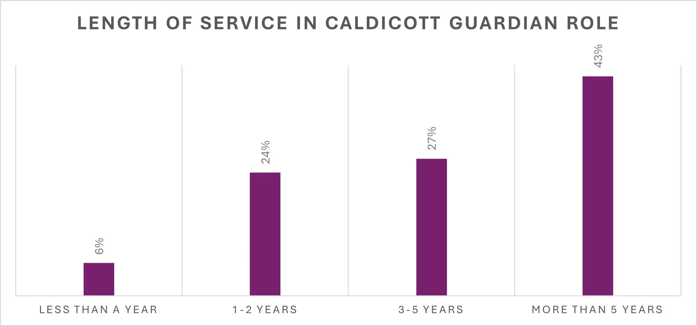 Most Caldicott Guardians are highly experienced: Over 40% of respondents have been in the role for more than five years, whilst 30% are newer (less than two years).